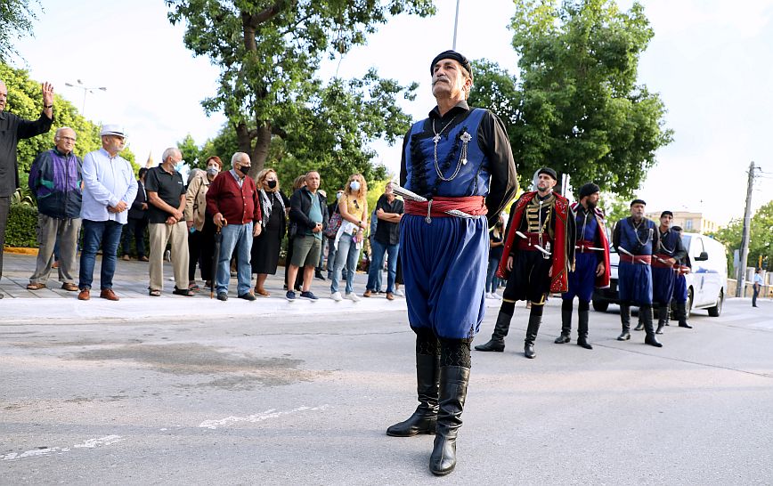 Η φιλαρμονική ορχήστρα των Χανίων και 96 βρακοφόροι, όσα και τα χρόνια του Μίκη, χαιρέτησαν με το δικό τους τρόπο τον μεγάλο συνθέτη όπως αναφέρει το neakriti.gr.