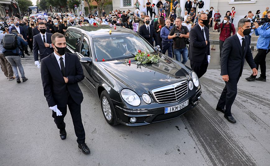 Κατά τη σύντομη στάση στη Δημοτική Αγορά πολίτες με δάκρυα στα μάτια αποχαιρέτησαν με ένα παρατεταμένο χειροκρότημα τον Μίκη Θεοδωράκη, φωνάζοντας «αθάνατος».