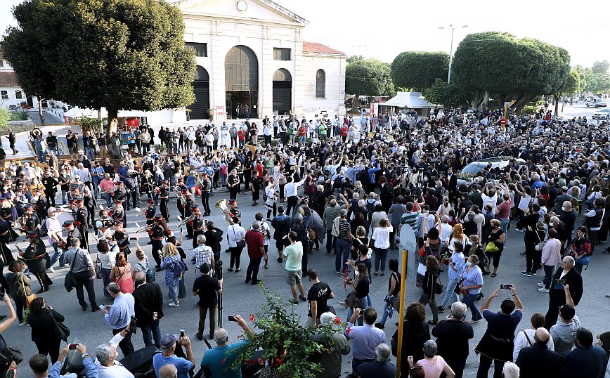 Από νωρίς το πρωί, κάτοικοι των Χανίων είχαν σταθεί σε διάφορα σημεία της διαδρομής που διένυσε η αυτοκινητοπομπή, από το λιμάνι της Σούδας μέχρι τη Δημοτική Αγορά, για να αποτίσουν φόρο τιμής στον κορυφαίο συνθέτη και δημιουργό.
