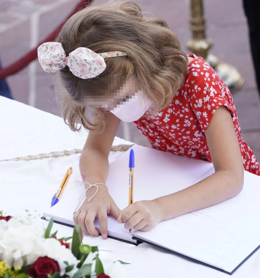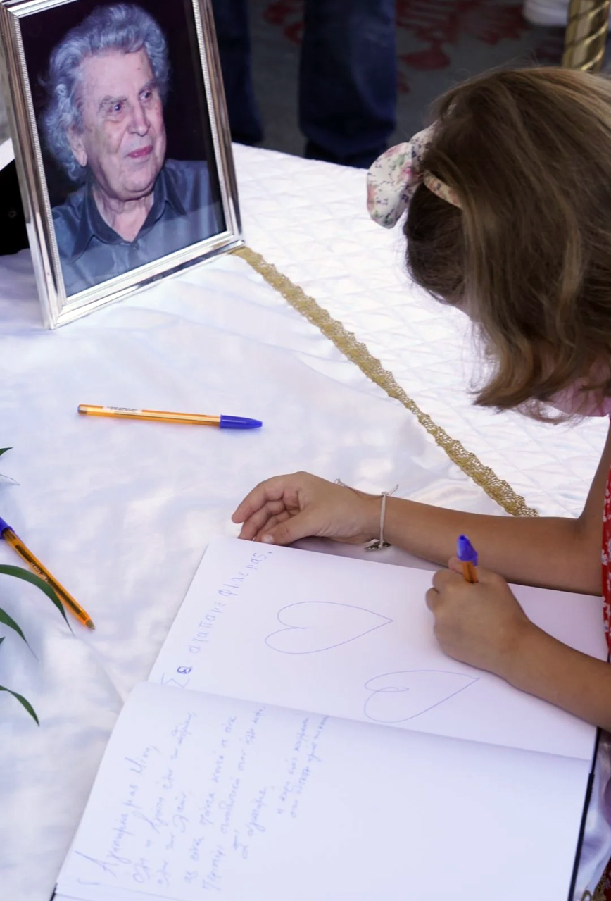 Το παιδί μπήκε στον ιερό ναό, άφησε ένα λουλούδι στο φέρετρο του μουσικοσυνθέτη και στο βιβλίο συλλυπητηρίων έγραψε: «Σε αγαπάμε φίλε μας» ζωγραφίζοντας δύο μεγάλες καρδιές σύμφωνα με το cretalive.