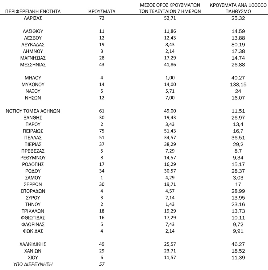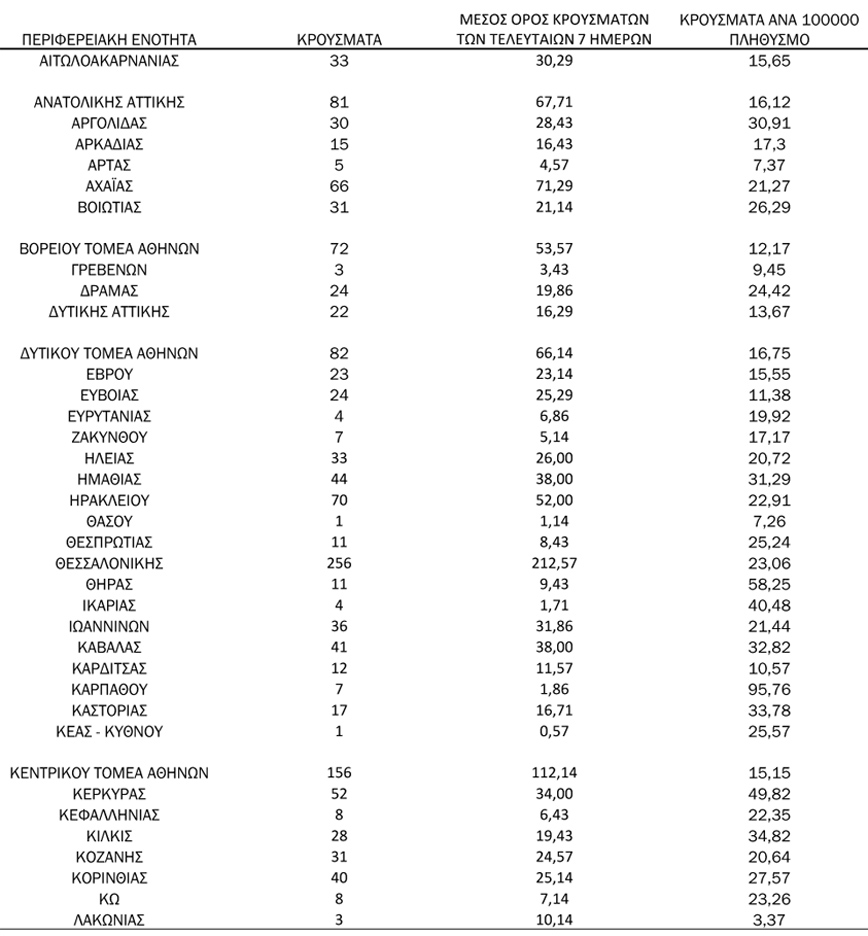 Συγκεκριμένα η Αττική έχει 561 νέα κρούσματα κορονοϊού και η Θεσσαλονίκη 256.