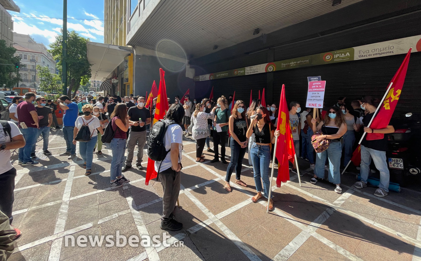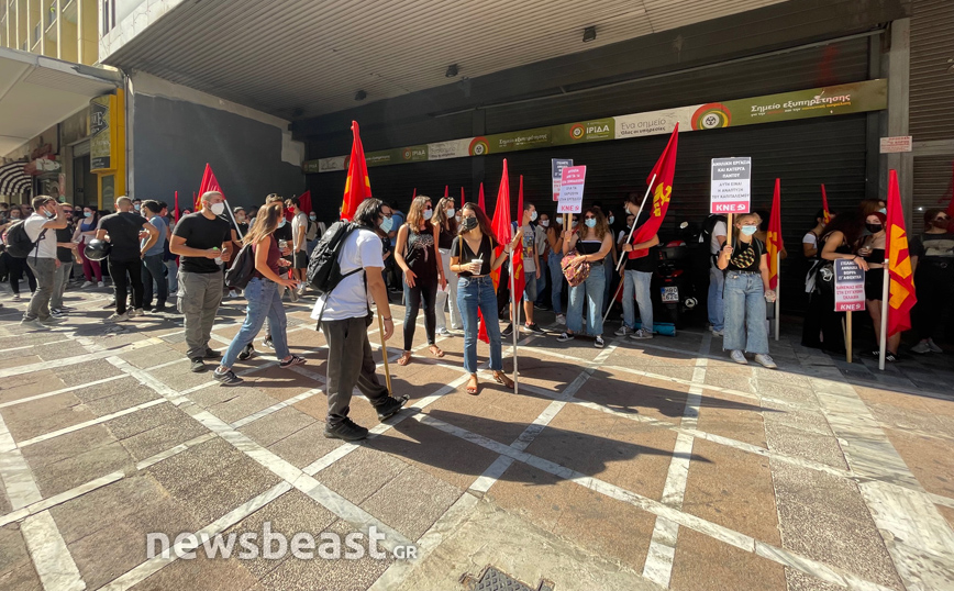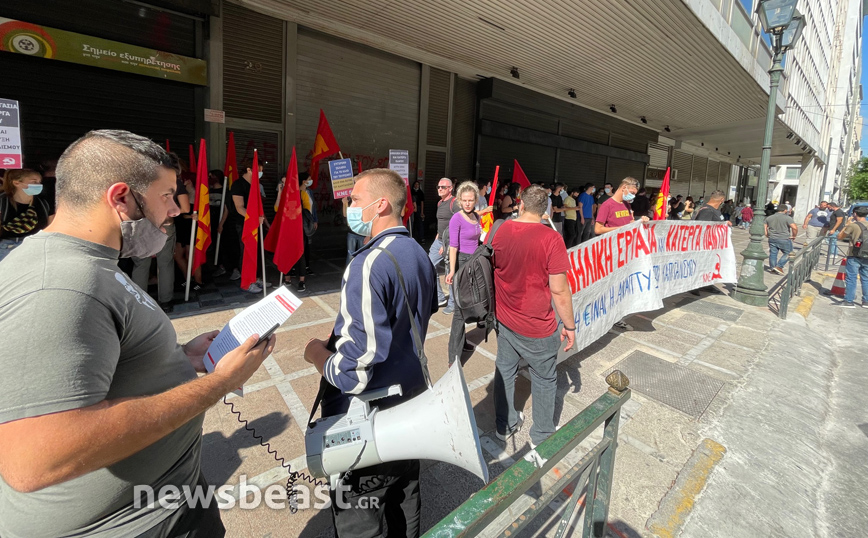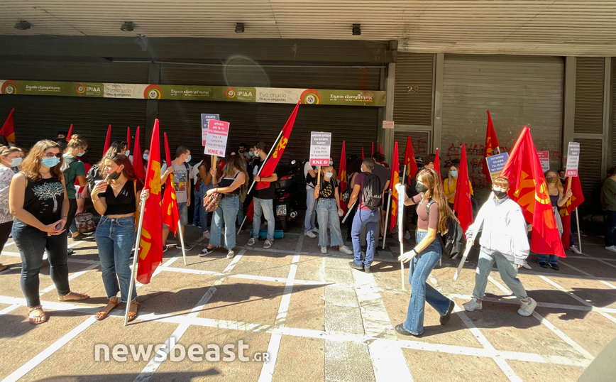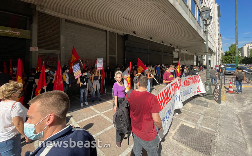 Συγκέντρωση έξω από το υπουργείο Εργασίας κατά της απασχόλησης 16χρονων παιδιών πραγματοποιούν αυτή την ώρα μέλη της ΚΝΕ.