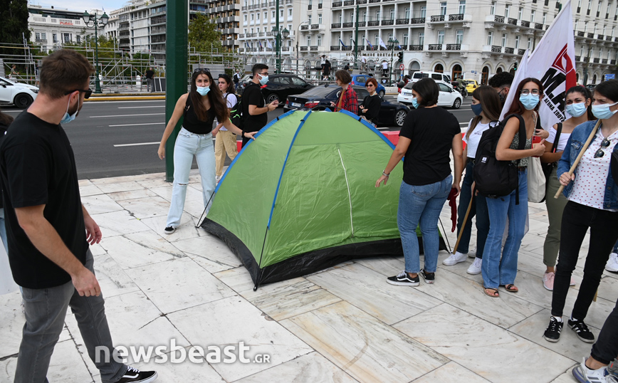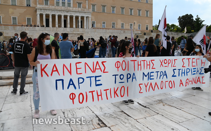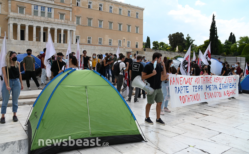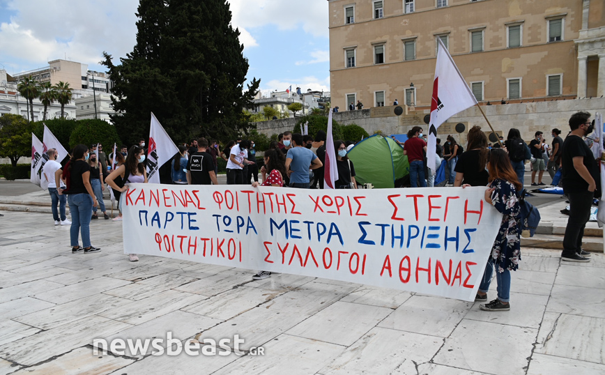Συγκέντρωση μπροστά από τη Βουλή πραγματοποίησαν την Παρασκευή (10/9) φοιτητικοί σύλλογοι, με αίτημα τη διασφάλιση στέγης για τους φοιτητές.