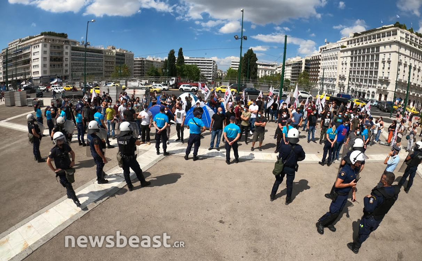 Οι φοιτητές που συμμετείχαν στην κινητοποίηση έστησαν μπροστά από το Μνημείο του Αγνώστου Στρατιώτη συμβολικά σκηνές. Ισχυρή στη συγκέντρωση που έληξε περίπου στη μία το μεσημέρι ήταν η παρουσία της αστυνομίας.