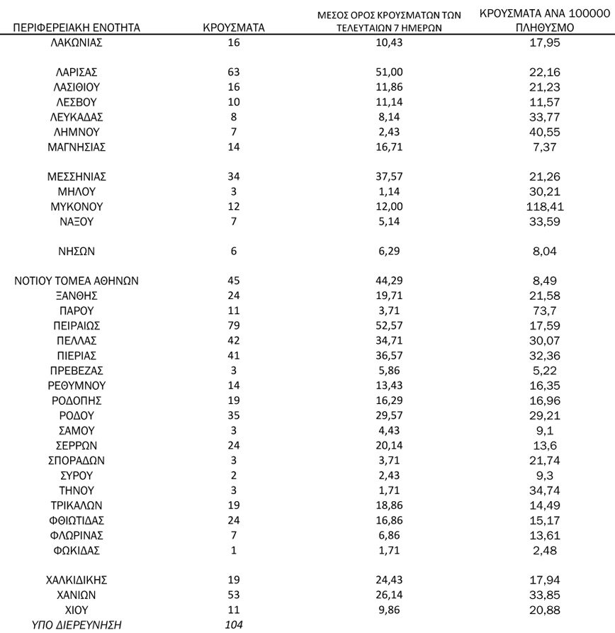 - 24 κρούσματα στην Π.Ε. Φθιώτιδας