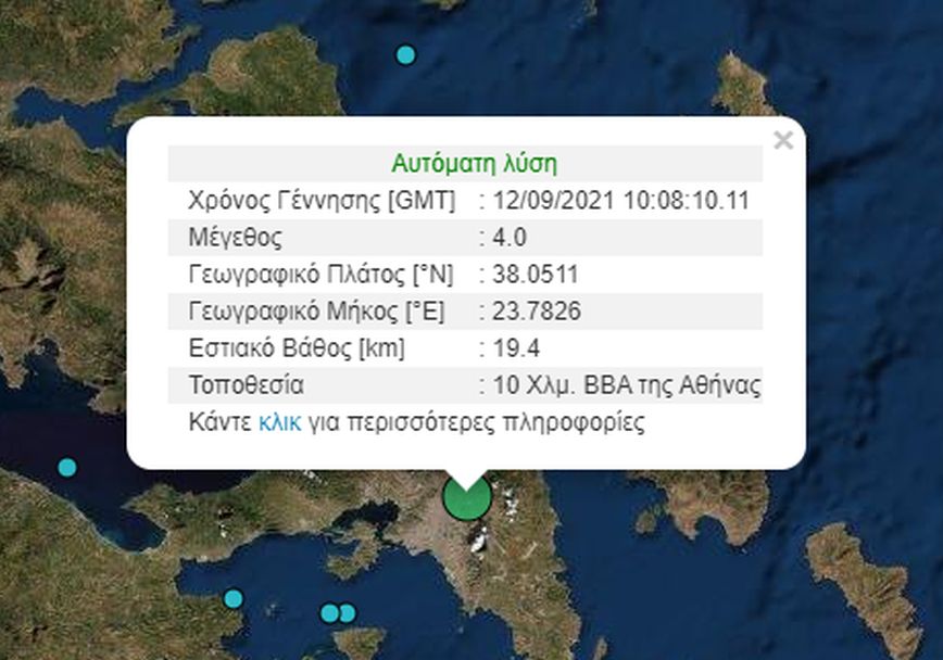 Σύμφωνα με το Γεωδυναμικό Ινστιτούτο Αθηνών, ο σεισμός είχε ένταση 4 βαθμών της κλίμακας Ρίχτερ, με το επίκεντρό του να εντοπίζεται 10 χιλιόμετρα βορειοβορειοανατολικά της πρωτεύουσας κι είχε εστιακό βάθος 19,4 χιλιόμετρα.