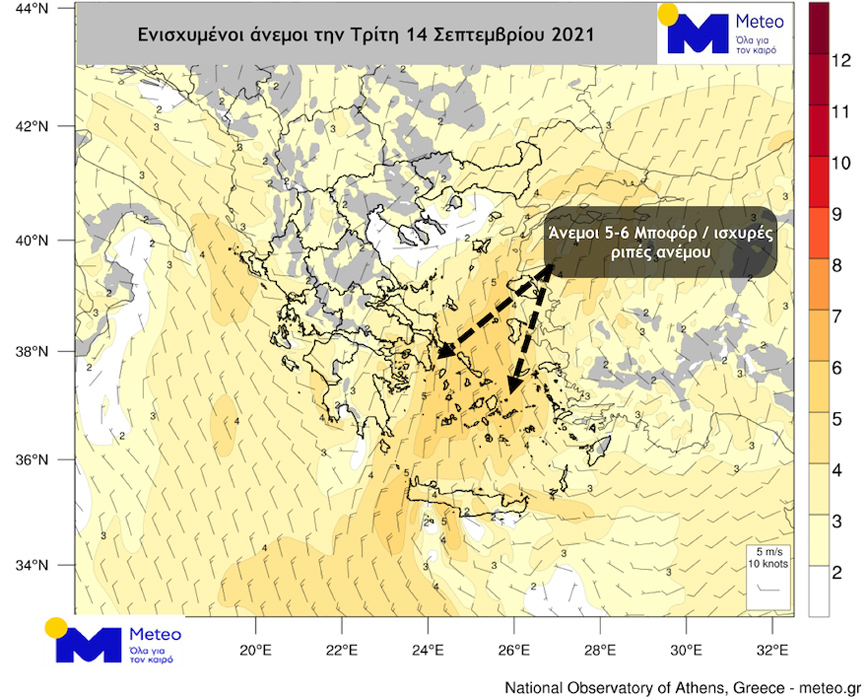 Ενισχυμένοι βόρειοι – βορειοδυτικοί άνεμοι θα πνέουν στο Αιγαίο και σε περιοχές της ανατολικής ηπειρωτικής χώρας σήμερα, με τις εντάσεις τους να φτάνουν τοπικά τα 6 μποφόρ, σύμφωνα με τα νεότερα προγνωστικά στοιχεία του Εθνικού Αστεροσκοπείου Αθηνών/meteo.gr.