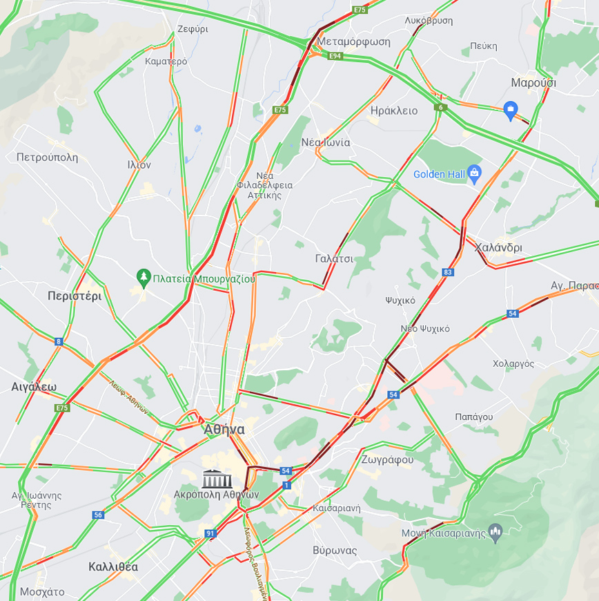 Δείτε τον χάρτη με την κίνηση στους δρόμους αυτή τη στιγμή: