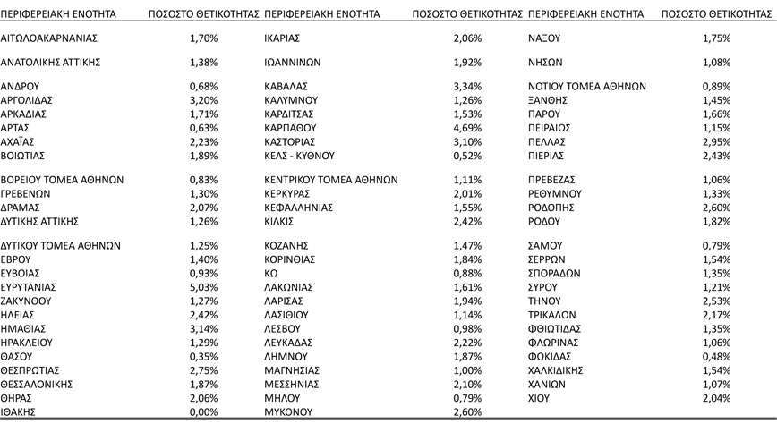 Δείτε, αναλυτικά, τη θετικότητα σε όλη τη χώρα: