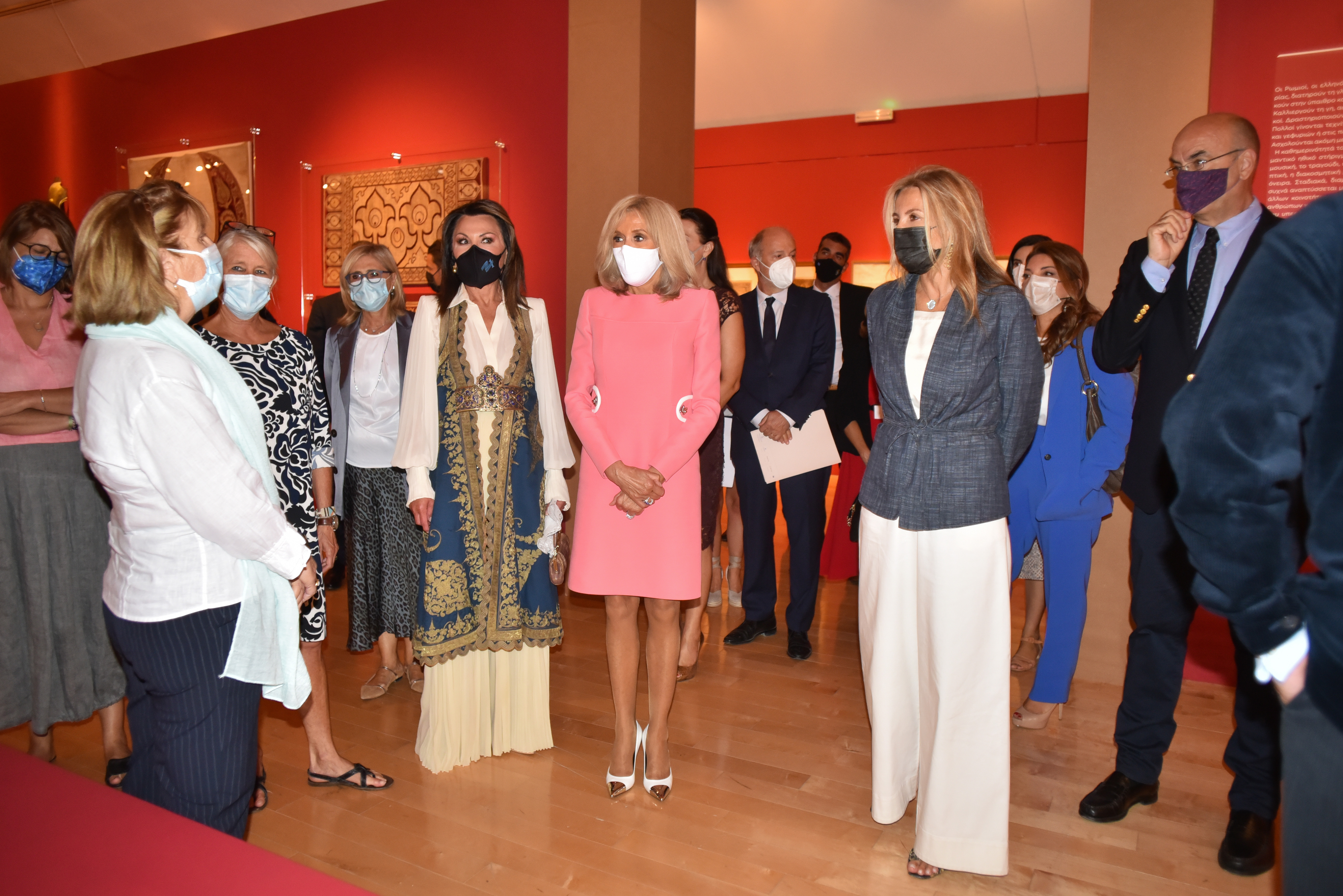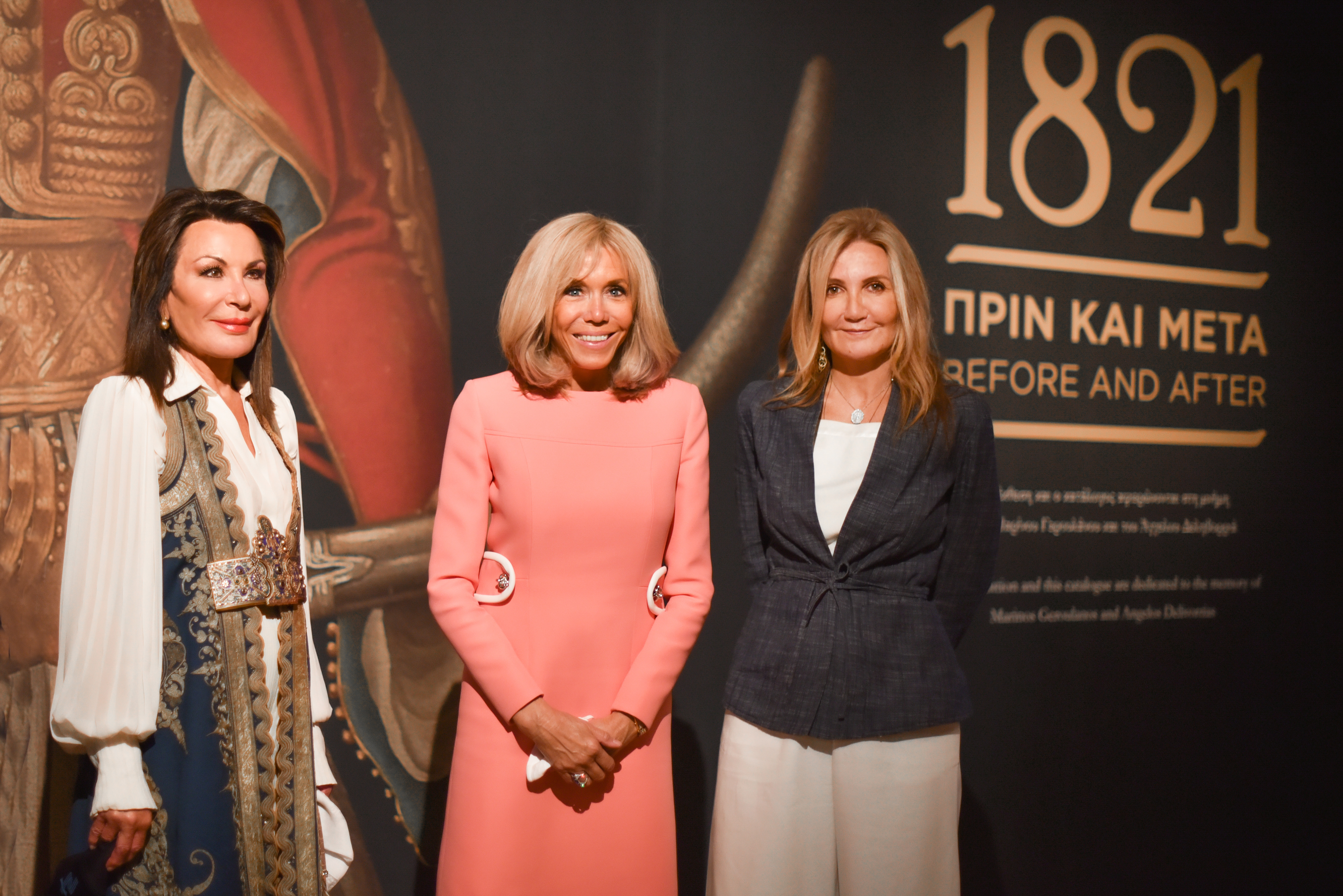 Η Πρώτη Κυρία της Γαλλίας, συνοδευόμενη από τη σύζυγο του Πρωθυπουργού παρακολούθησε την εκθεσιακή αφήγηση με τα εκατοντάδες έργα τέχνης και αρχειακά τεκμήρια που ξεδιπλώνει περισσότερα από εκατό χρόνια ιστορίας (1770-1870). Μέσα από τα ιστορικά αντικείμενα που εξασφαλίστηκαν απευθείας από τις οικογένειες των αγωνιστών του 1821 ή μέσω δανείων από μεγάλα μουσεία του εξωτερικού και ιδιωτικές συλλογές και από τη Γαλλία, η κα Μακρόν είδε να ζωντανεύουν σε τρεις ενότητες, η πορεία προς την εθνική Επανάσταση, η εξέλιξη του πολέμου της ανεξαρτησίας, η ολοκλήρωση του Αγώνα, η δημιουργία του νέου ελληνικού κράτους και οι πρώτες δεκαετίες της ανάπτυξης και λειτουργίας του.