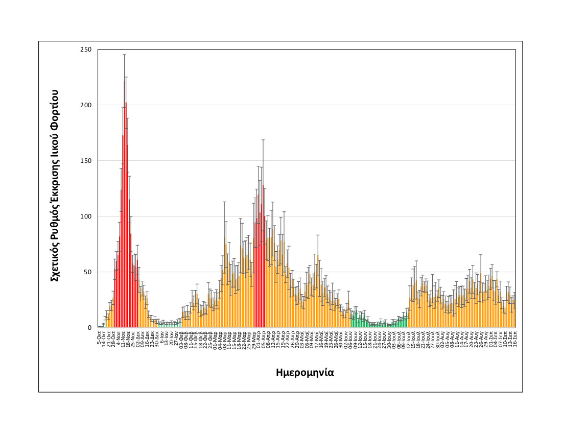 Συγκεκριμένα, στα δείγματα που λαμβάνονται καθημερινά στην είσοδο της εγκατάστασης Επεξεργασίας Λυμάτων Θεσσαλονίκης, αναφορικά με τις εξορθολογισμένες τιμές σχετικής έκκρισης ιικού φορτίου, η μέση τιμή των δύο πιο πρόσφατων μετρήσεων, δηλαδή της Τετάρτης 15/09 και της Πέμπτης 16/09 είναι: