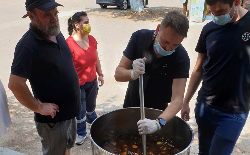 Εργαζόμενοι της Puratos Hellas συμμετείχαν ενεργά στην παρασκευή και τη διανομή γευμάτων πόρτα-πόρτα, στους κατοίκους 18 χωριών στη Β. Εύβοια, μαζί με είδη πρώτης ανάγκης και άλλα τρόφιμα.