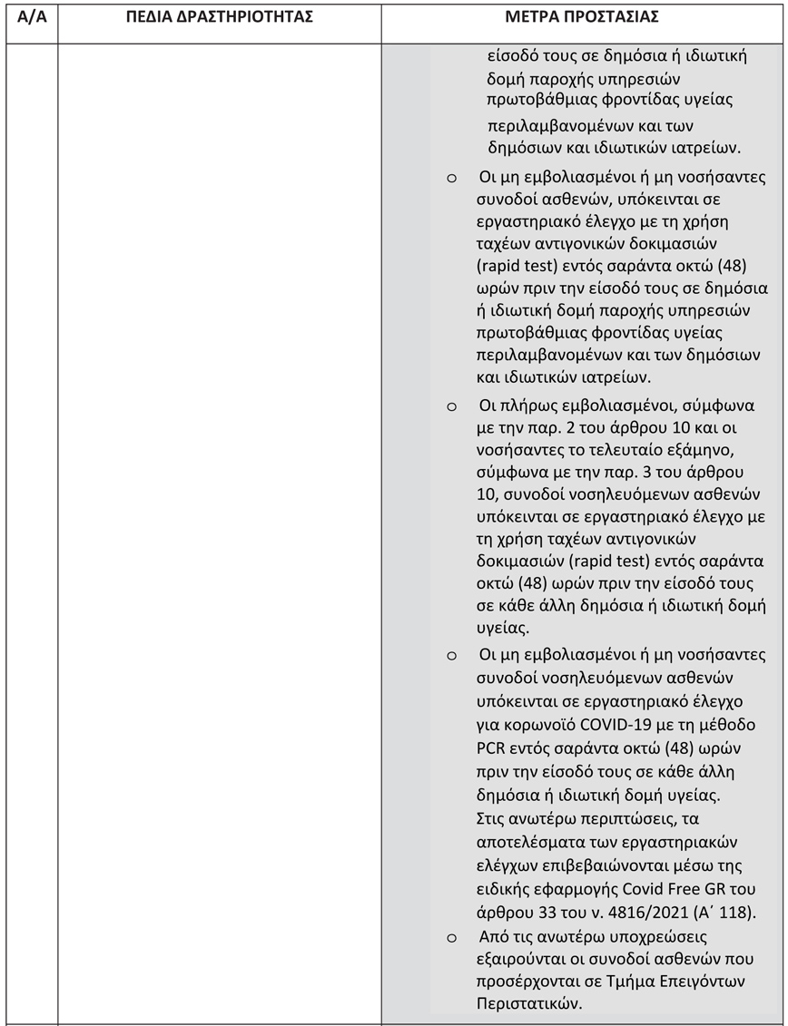Σημειώνεται ότι καθ’ όλη τη διάρκεια της σημερινής μέρας φαίνεται να έχει προκληθεί ένα αλαλούμ σχετικά με τις οδηγίες του ΦΕΚ και αυτά που προτείνουν οι φαρμακοποιοί. Σύμφωνα με το ΦΕΚ, το pcr (μοριακό) test των 48 ωρών θα πρέπει να προσκομίζεται από τους ανεμβολίαστους συνοδούς των ασθενών και όχι από τους ανεμβολίαστους ασθενείς.