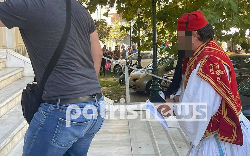 Ντυμένος τσολιάς εμφανίστηκε στα δικαστήρια του Πύργου το μεσημέρι της Παρασκευής συνοδευόμενος από αστυνομικούς του Τμήματος Ασφαλείας Πύργου ο Αλέξανδρος Μαγκότσος.