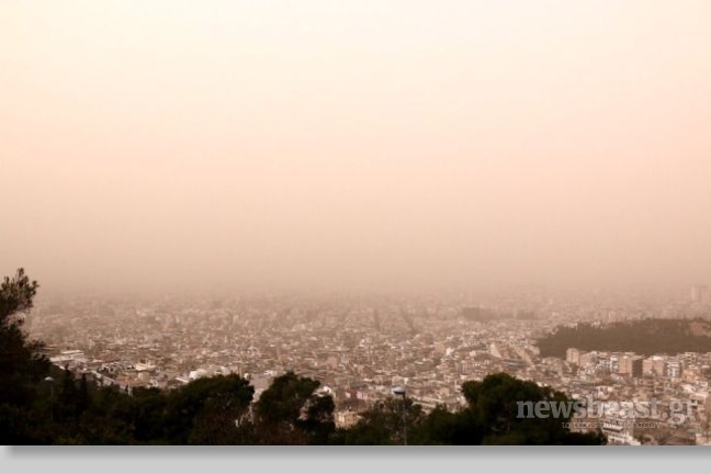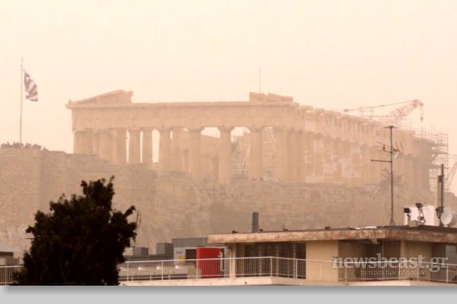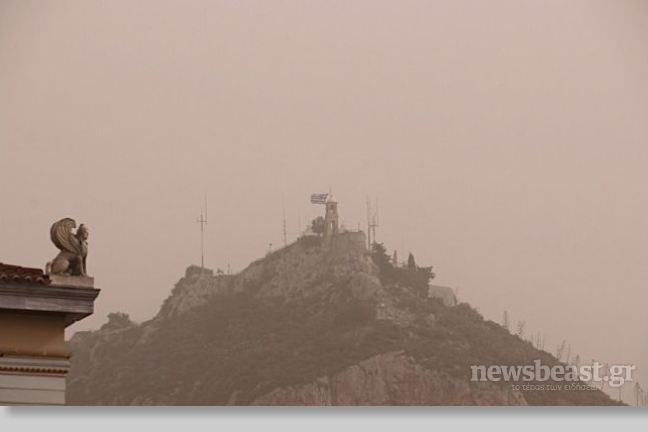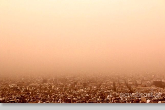 Αποπνικτική είναι η ατμόσφαιρα στην Αθήνα λόγω του πέπλου της αφρικανικής σκόνης που έχει καλύψει την πόλη εξαιτίας των θυελλωδών νοτιάδων.