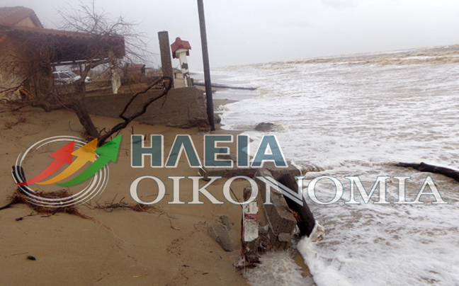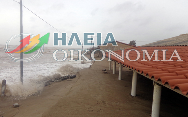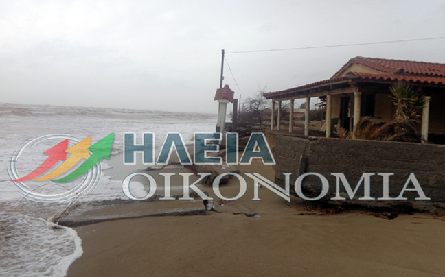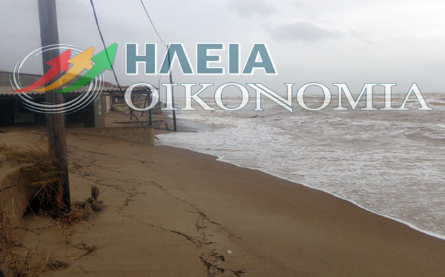 Η μεγάλη θαλασσοταραχή και οι δυνατοί άνεμοι των τελευταίων δύο ημερών είχαν σαν αποτέλεσμα η θάλασσα, σε πολλές περιοχής της Ηλείας, να έχει βγει δεκάδες μέτρα προς την ξηρά. Σε κάποιες περιοχές μάλιστα παρέσυρε παραλιακά σπίτια και σε κάποιες άλλες βρέθηκε σε ελάχιστη απόσταση από αυτά.