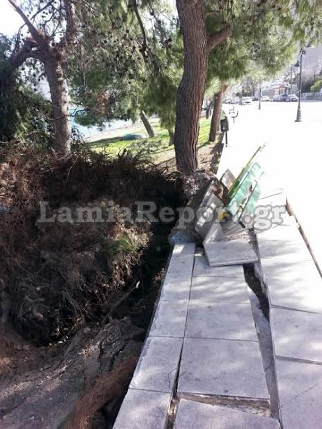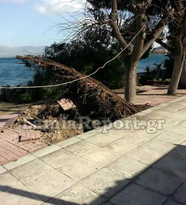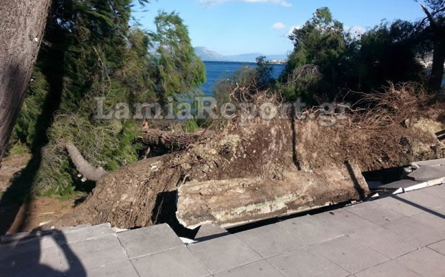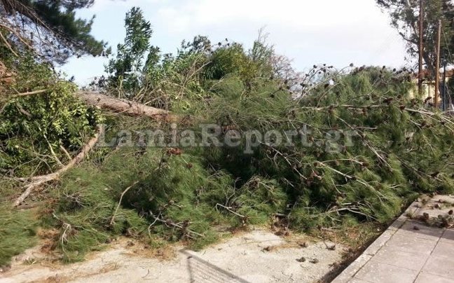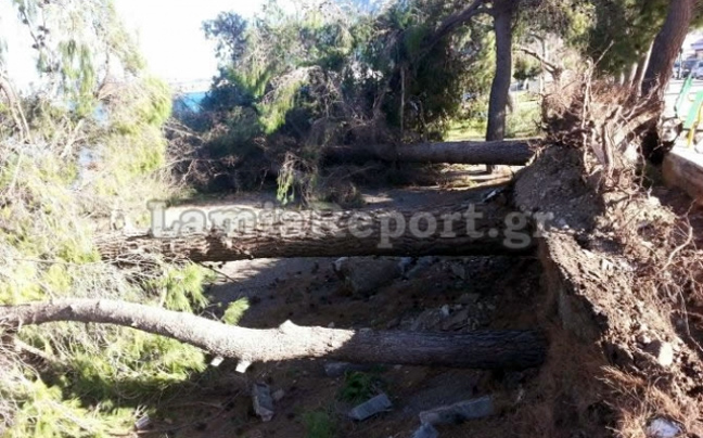 Δέντρα και κολώνες της ΔΕΗ έπεσαν, πεζοδρόμια ξηλώθηκαν, στέγες «σηκώθηκαν», ηλιακοί θερμοσίφωνες «πετούσαν» και τζαμαρίες έσπασαν.