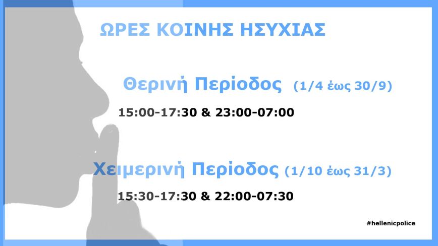 Οκτώβριος από αύριο και ξεκινά η χειμερινή περίοδος όσον αφορά τις ώρες κοινής ησυχίας. Ειδικότερα, κατά τη χειμερινή περίοδο οι ώρες κοινής ησυχίας είναι από 15:30 έως 17:30 και από 22:00 έως 07:30.