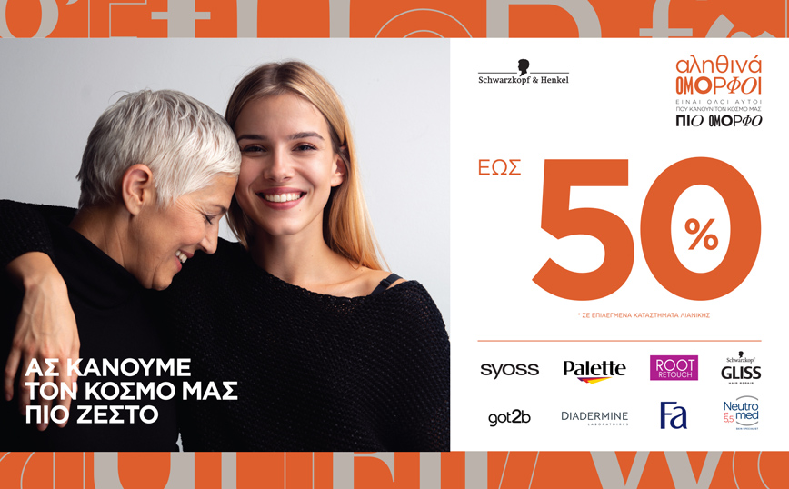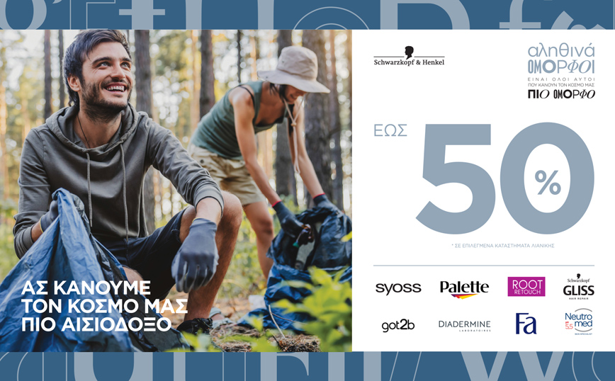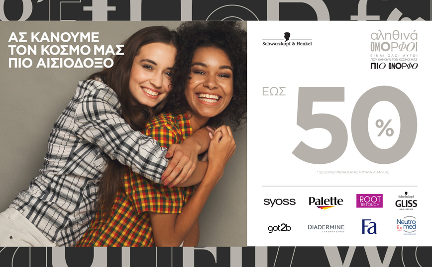 Αυτή την ομορφιά υποστηρίζει η Henkel, προσφέροντάς μας εκπτώσεις έως 50% στα αγαπημένα μας προϊόντα ομορφιάς και προσωπικής φροντίδας Syoss, Gliss, Palette, Root Retouch, Got2b, Taft, Diadermine, Fa, Neutromed και Theramed.
