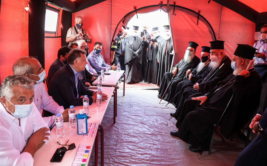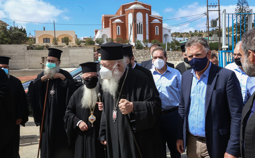 Ακολούθησε η επίσκεψη του Αρχιεπισκόπου κ. Ιερωνύμου στο Συντονιστικό Κέντρο Επιχειρήσεων της Πυροσβεστικής στο Αρκαλοχώρι όπου αφού τόνισε ότι στην Ελλάδα εύκολα λέμε τα μεγάλα λόγια και μετά ξεχνάμε, ότι η Εκκλησία δίνει το παράδειγμα στη συνέχεια υπογράμμισε: «Πρέπει να είμαστε φειδωλοί στα λόγια, γιατί θα παρασυρθούμε. Εμείς στη Βοιωτία κουβαλάμε μία πείρα μεγάλη, που μας λέει ότι οι πρώτες ώρες μετά από έναν σεισμό είναι οι πιο δύσκολες, είναι εκείνες οι ώρες που κόβουνε την πορεία της ζωής μας, μας αλλάζουν τα προγράμματα, μας φέρνουν ξαφνικά πράγματα που δεν τα περιμέναμε και χρειάζεται ο άνθρωπος στήριξη ηθική και πνευματική προπάντων, αλλά και υλική. Οι συνεργάτες μου κι εγώ, μέσα σε αυτή την ταραχή, είπαμε ότι αγαπάμε τους Κρήτες, ενδιαφερόμαστε για τους Κρήτες. Υποφέρουν και αυτοί όπως έχουμε υποφέρει εμείς άλλες φορές. Αυτή την ώρα, που αρχίζει ένας αγώνας αναστηλώσεως, πρέπει να βρεθούμε πλάι τους, για να τους τονώσουμε ψυχικά, να τους βοηθήσουμε υλικά όσο μπορούμε και να τους υποσχεθούμε κουράγιο – θα βοηθήσει ο Θεός, ώστε να ξαναφτιάξουμε αυτά που χάλασαν και να ξαναζήσουμε τη ζωή μας από την αρχή».