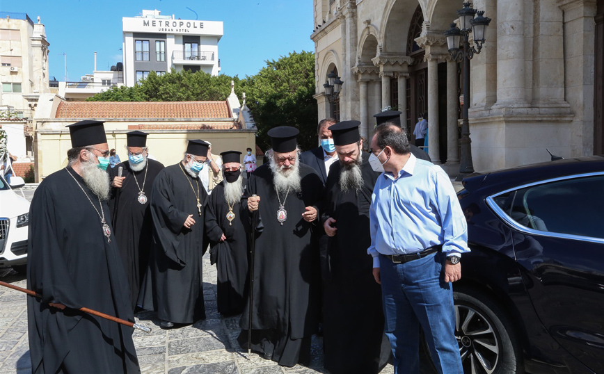 Ο Προκαθήμενος της Εκκλησίας της Ελλάδος έφτασε λίγο μετά τις 11:10 στο Ηράκλειο, στην Αρχιεπισκοπή Κρήτης και κατευθύνθηκε στο Μητροπολιτικό Ναό του Αγίου Μηνά.