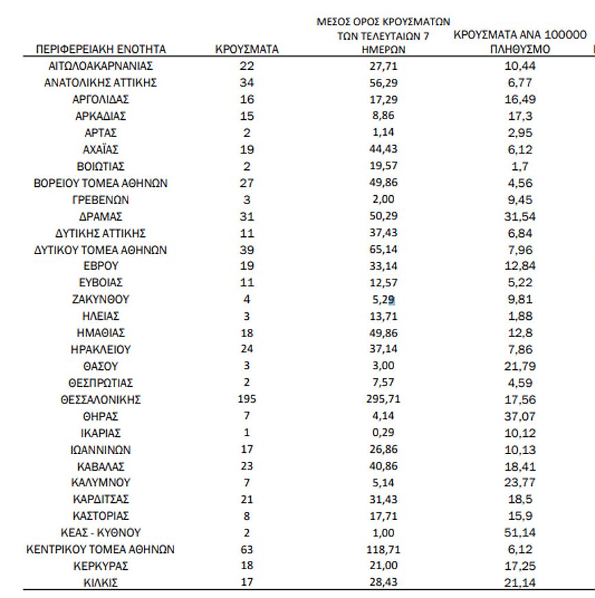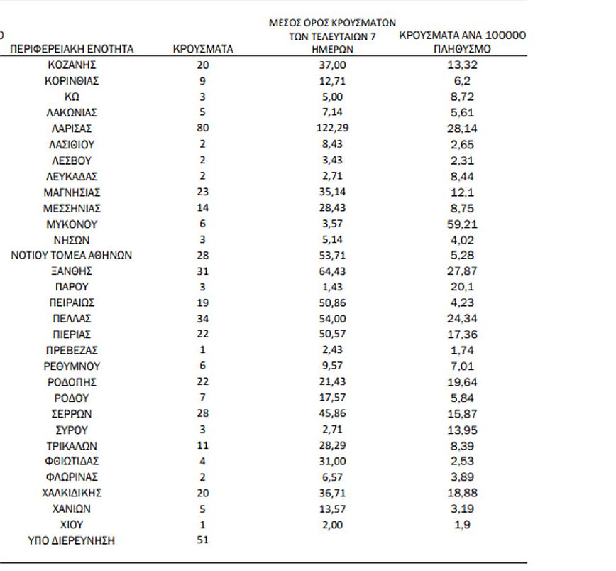 Αναλυτικά η κατανομή των κρουσμάτων.
