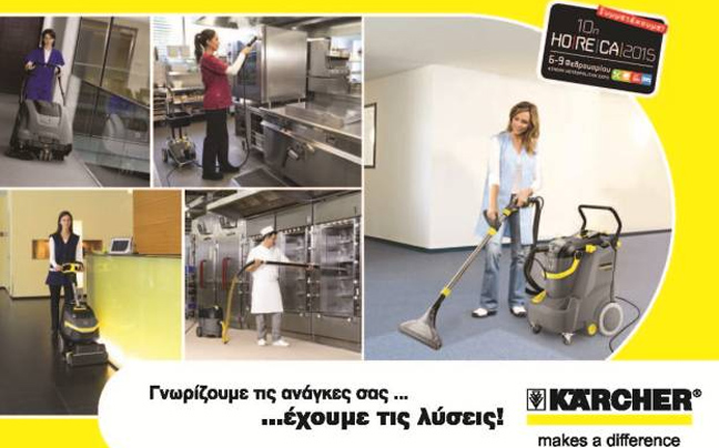 H Kärcher, η μεγαλύτερη εταιρία συστημάτων καθαρισμού, συμμετέχει στην 10η Διεθνή έκθεση HO.RE.CA. 2015 που θα πραγματοποιηθεί στο εκθεσιακό κέντρο Metropolitan Expo, από την Παρασκευή 6 έως και τη Δευτέρα 9 Φεβρουαρίου 2015.