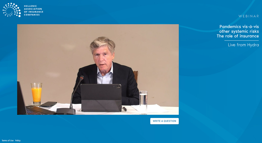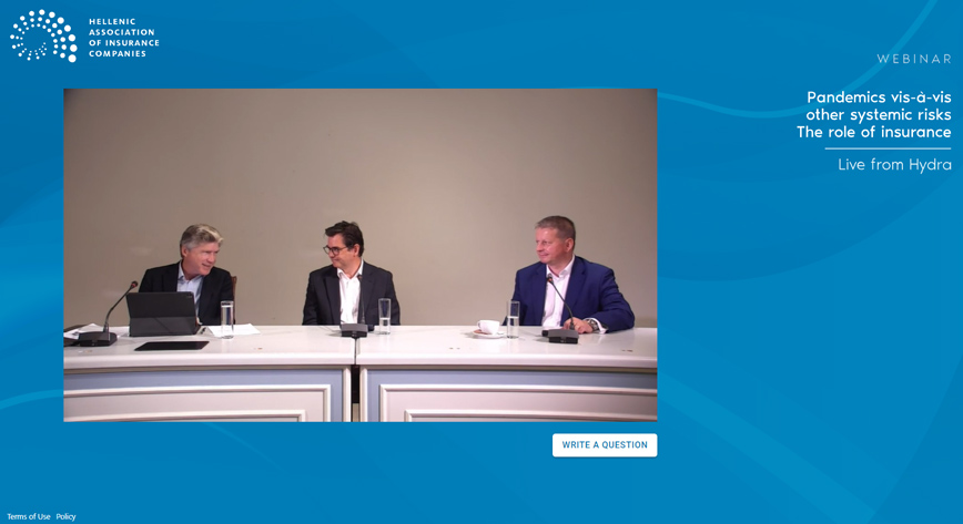 Η Ένωση Ασφαλιστικών Εταιριών Ελλάδος (ΕΑΕΕ) διοργάνωσε webinar με θέμα την πανδημία και τους άλλους συστημικούς κινδύνους που αντιμετωπίζει ο πλανήτης, το οποίο προβλήθηκε ζωντανά από το νησί της Ύδρας.