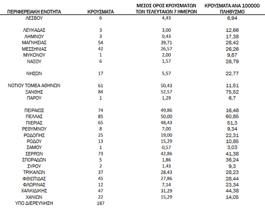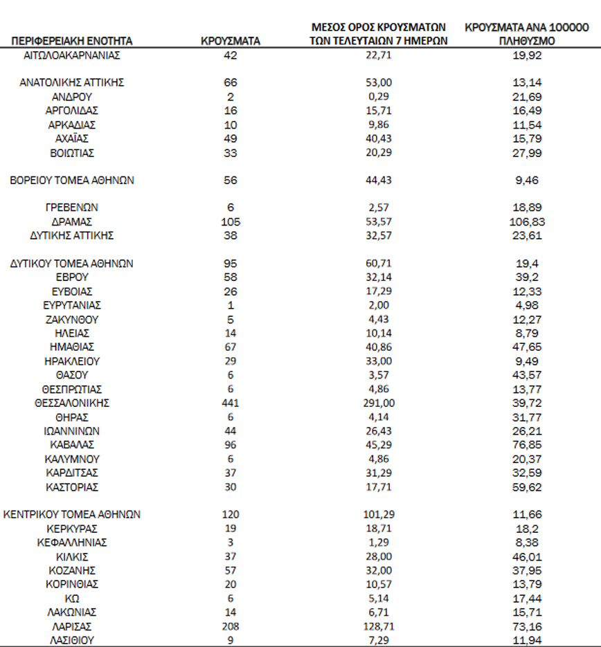 Συγκεκριμένα η Θεσσαλονίκη έχει 441 νέα κρούσματα κορονοϊού, η Λάρισα 208 και η Δράμα 105.
