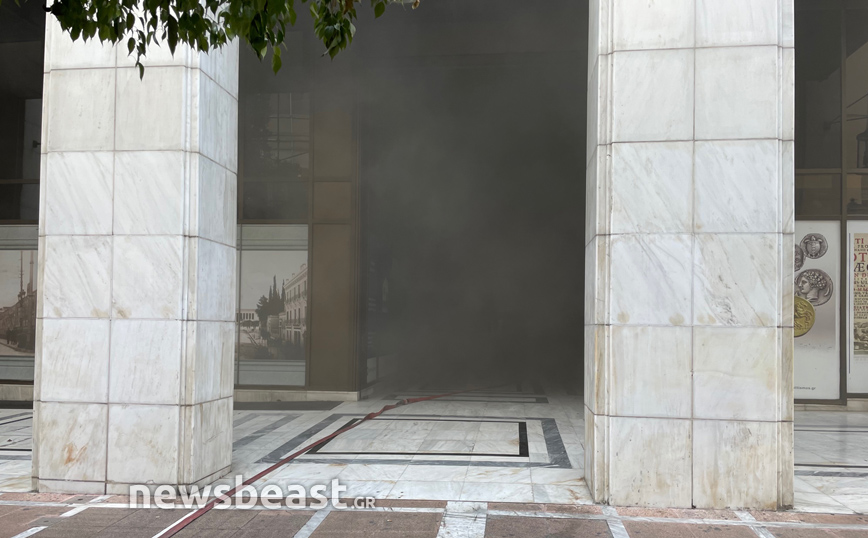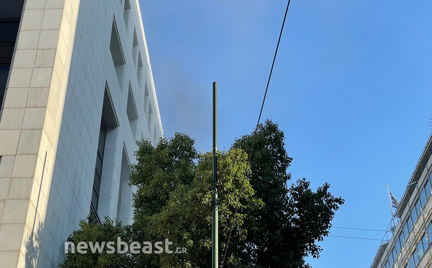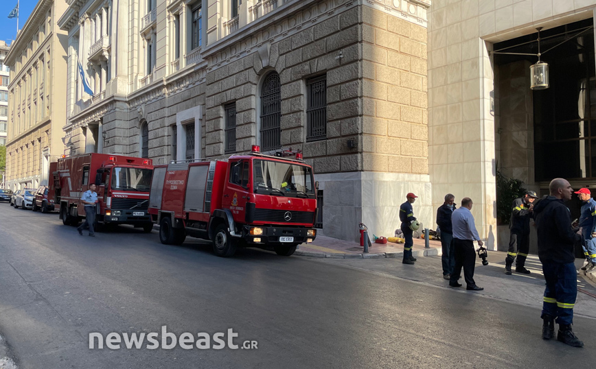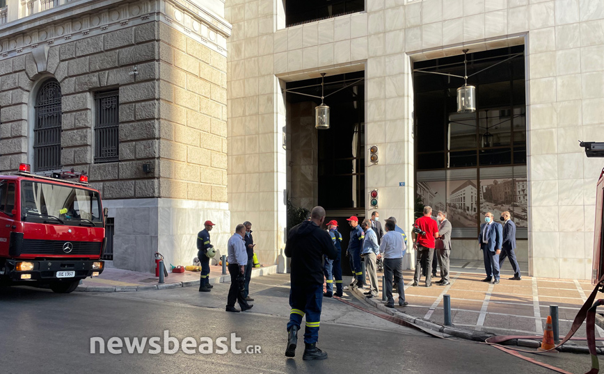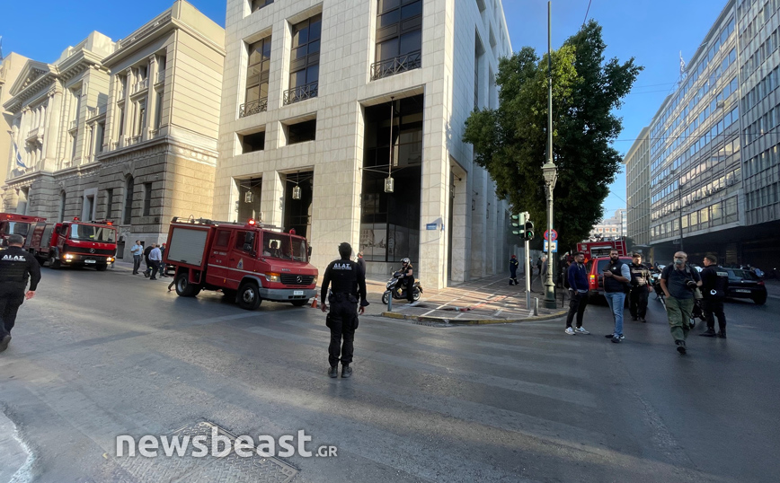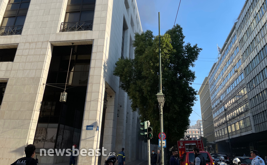 Συγκεκριμένα οι καπνοί βγαίνουν από το δεύτερο υπόγειο κτιρίου στην συμβολή της Σταδίου με την Πεζματζόγλου, όπου εκεί βρίσκεται η Alpha Bank.