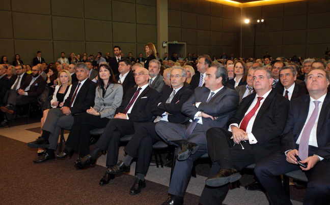 Από αριστερά διακρίνονται Πάνος Λειβαδάς, γενικός γραμματέας ΕΟΤ, Νίκος Χουδαλάκης, πρόεδρος της διοργανώτριας εταιρείας Forum Α.Ε., Κωνσταντίνος Μίχαλος, πρόεδρος του ΕΒΕΑ, Έλενα Κουντουρά, Γιώργος Τσακίρης, πρόεδρος του Ξενοδοχειακού Επιμελητηρίου Ελλάδος, Χριστίνα Τετράδη, Οικονομική Επόπτης του ΔΣ του ΞΕΕ και Ανδρέας Φιορεντίνος, γενικός γραμματέας Πανελλήνιας Ομοσπονδίας Ξενοδόχων.