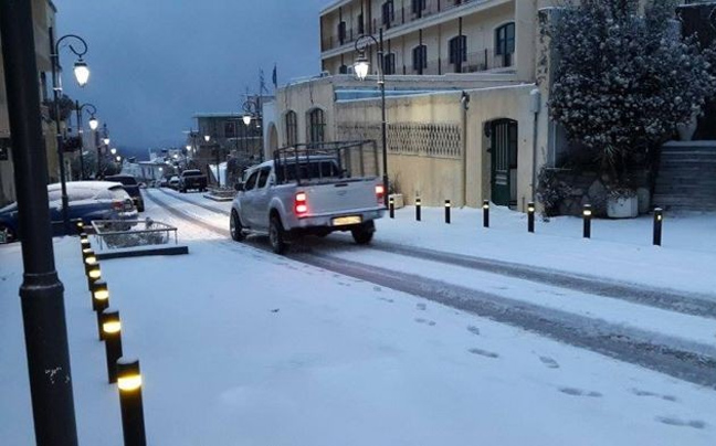 Χιόνι έχει καλύψει και τις ορεινές και ημιορεινές περιοχές του Ρεθύμνου στις οποίες συνεχίστηκε η χιονόπτωση.