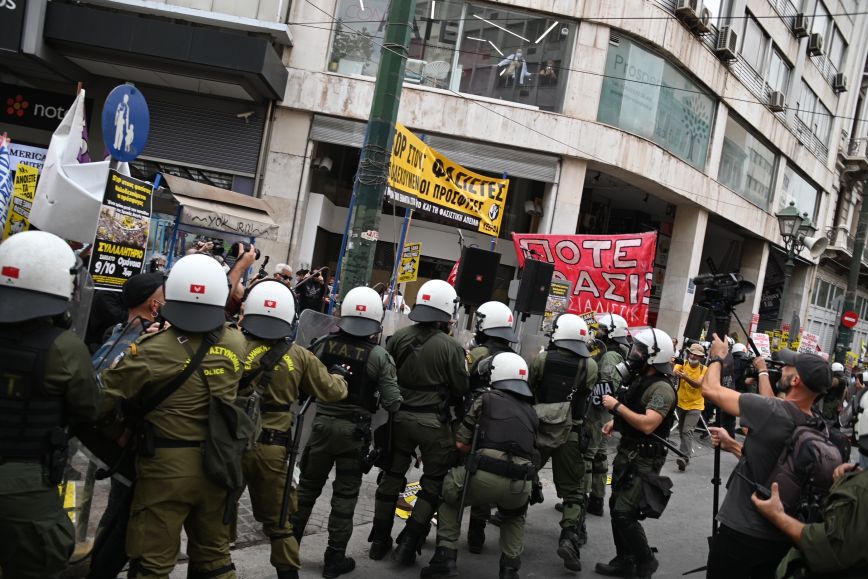 Σύμφωνα με πληροφορίες, οι διαδηλωτές θα επιχειρήσουν να κάνουν πορεία προς τη Βουλή, με τις δυνάμεις των ΜΑΤ να εμφανίζονται διατεθειμένες να τους σταματήσουν.