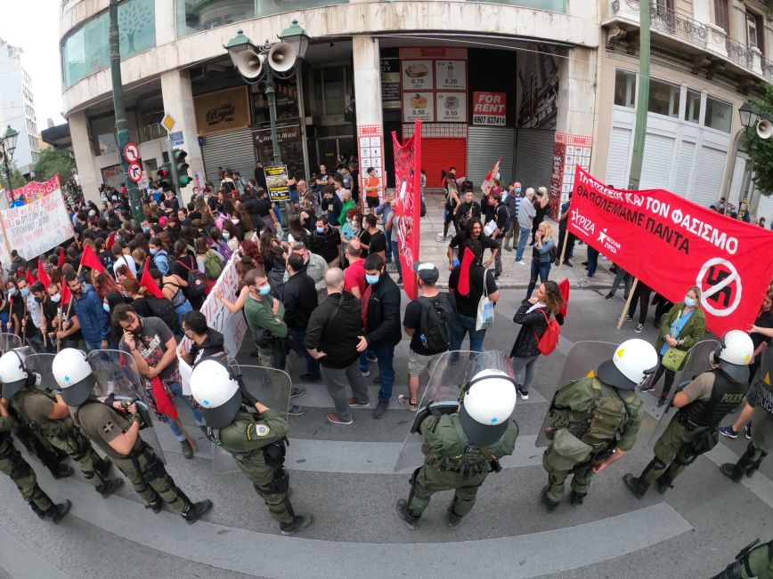 Ένταση επικράτησε στο αντιφασιστικό συλλαλητήριο που πραγματοποιείται στην Ομόνοια.