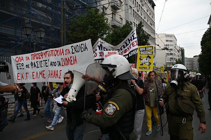 Στη διαμαρτυρία συμμετείχαν ΚΕΕΡΦΑ, ΑΔΕΔΥ, φοιτητικοί σύλλογοι, κοινότητες μεταναστών, πρόσφυγες από τα στρατόπεδα, άνθρωποι των Γραμμάτων και των τεχνών, οργανώσεις και κόμματα της Αριστεράς.