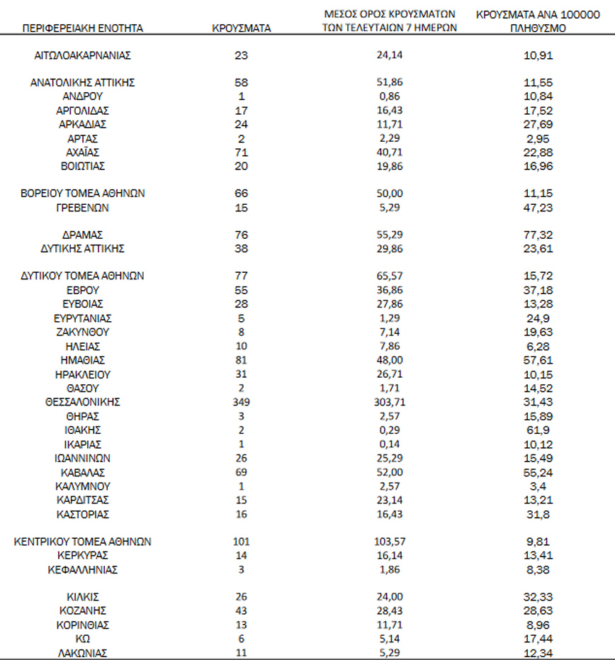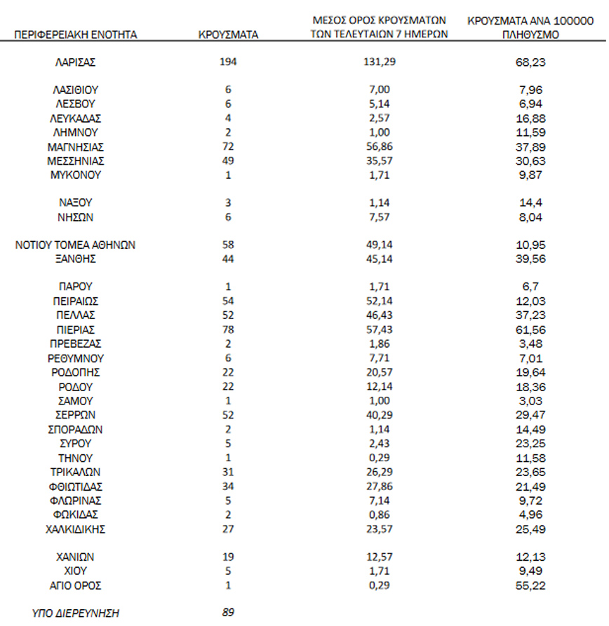 Συγκεκριμένα η Αττική έχει 458 περιστατικά covid-19, η Θεσσαλονίκη 349 και η Λάρισα 194 κρούσματα.