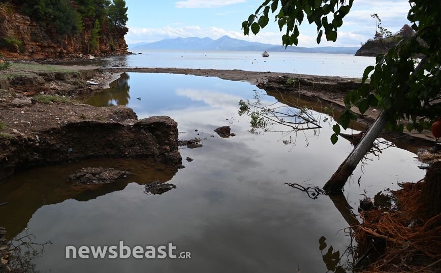Η Κοτσικιά, είναι ίσως η παραλία που επλήγη περισσότερο από όλες στην πυρόπληκτη Βόρεια Εύβοια. Η εικόνα είναι καταρχάς αλλόκοτη μίας και από δύο ταβέρνες της παραλίας, παρασύρθηκαν 3-4 ψυγεία και ψυγειοκαταψύκτες από το σφοδρό ποτάμι που κατέβηκε με μεγάλη φόρα από το βουνό-κάποια σφήνωσαν στα βράχια, ένα άλλο «δεσπόζει» στη μέση της παραλίας.