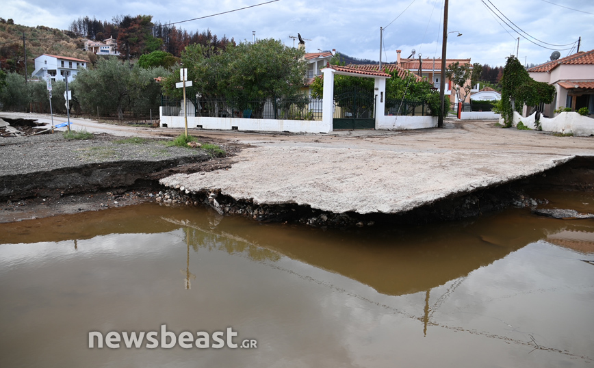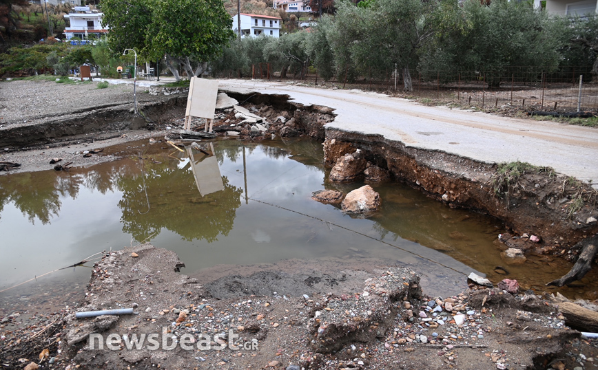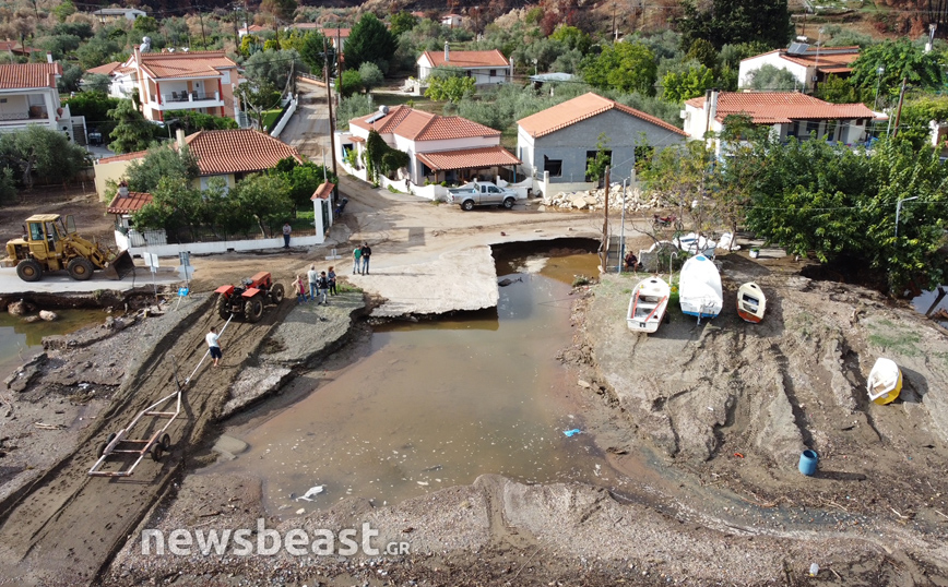 Η εικόνα είναι πάντως απελπιστική, αυλές και χωράφια έχουν πνίγει στη λάσπη, το ίδιο και το μικρό εκκλησάκι του συνοικισμού ενώ ο δρόμος πάνω στην παραλία έχει σπάσει στη μέση σε διάφορα σημεία.