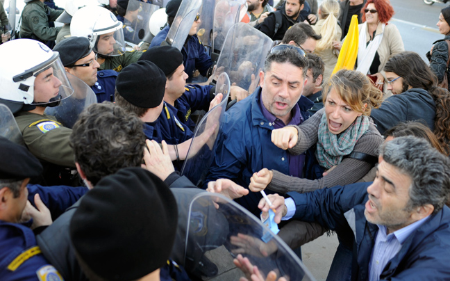 Η Αστυνομία δεν έκανε πίσω και το αποτέλεσμα ήταν οι δύο πλευρές να συγκρουστούν. Αυτή την ώρα, η κατάσταση είναι τεταμένη και οι διαδηλωτές ζητούν από τις διμοιρίες να φύγουν από τη μέση για να πάνε στο ραντεβού τους. Η εντολή πάντως που υπάρχει, όπως διαρρέουν οι πληροφορίες, είναι οι αστυνομικοί να μην κάνουν χρήση χημικών για την ώρα.