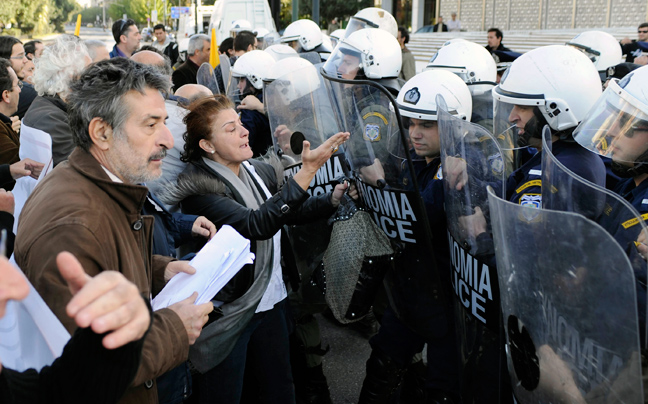 Η Αστυνομία έχει κλείσει το δρόμο που οδηγεί στο υπουργείο Εσωτερικών και οι περίπου 1.000 διαδηλωτές της ΠΟΕ – ΟΤΑ που κατευθύνονταν στο υπουργείο Εσωτερικών απαίτησαν να ανοίξει ο δρόμος.