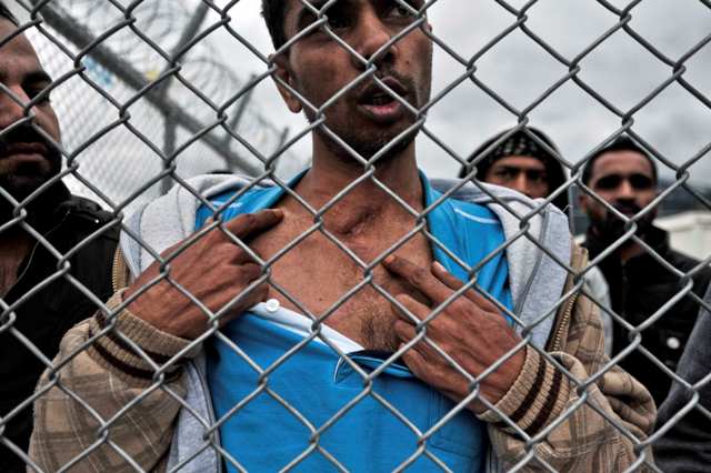 Φωτογραφίες-σοκ από το κέντρο κράτησης μεταναστών στην Αμυγδαλέζα κατέγραψε φωτορεπόρτερ για λογαριασμό του πρακτορείου Reuters, μετά τα επεισόδια που σημειώθηκαν το βράδυ της Παρασκευής, μετά την αυτοκτονία ενός μετανάστη.