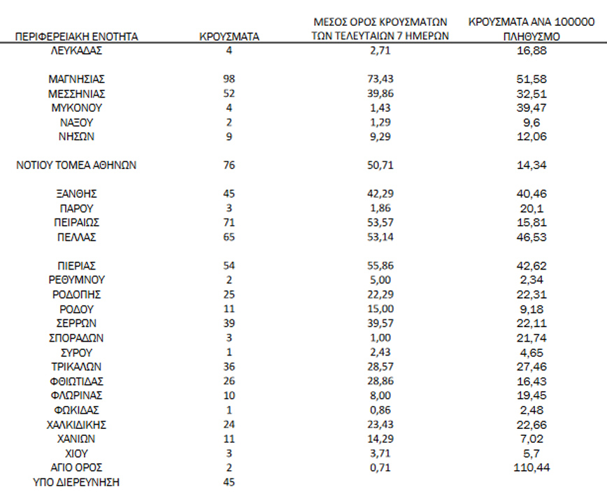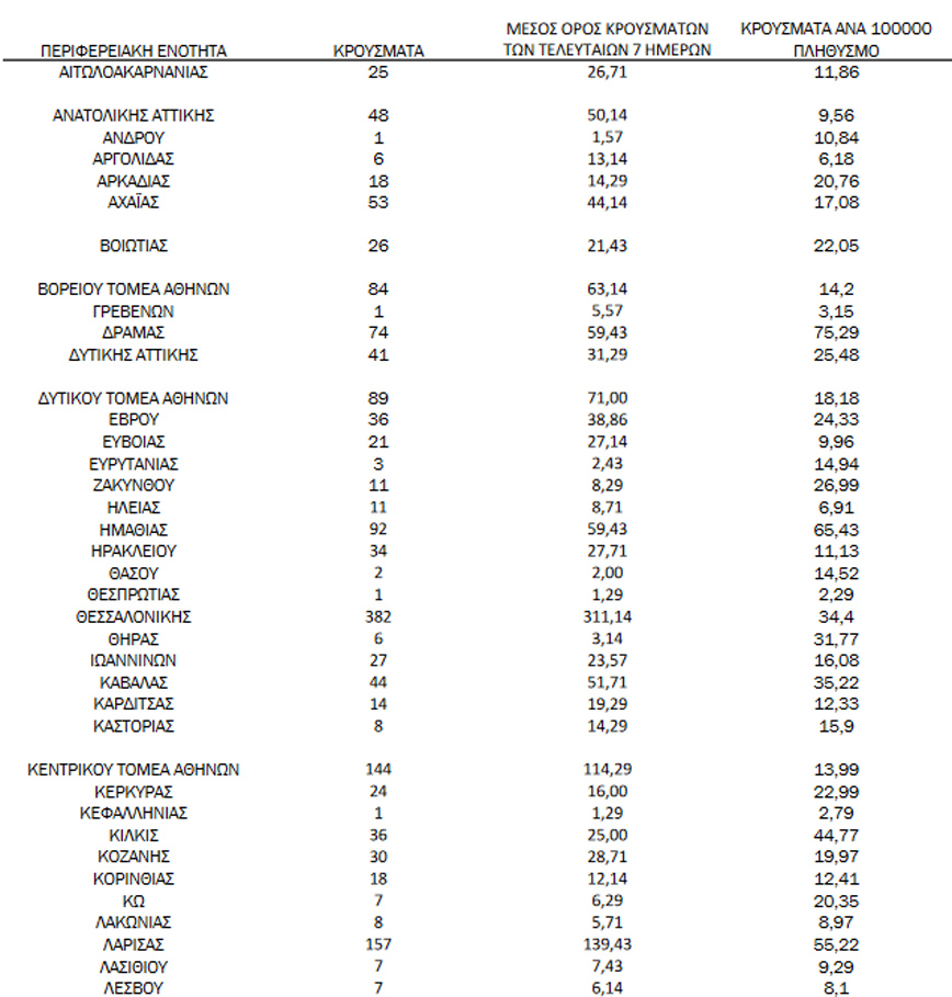 Η Αττική έχει 562 νέα κρούσματα κορονοϊού, η Θεσσαλονίκη 382, η Λάρισα 157 και η Μαγνησία 98.