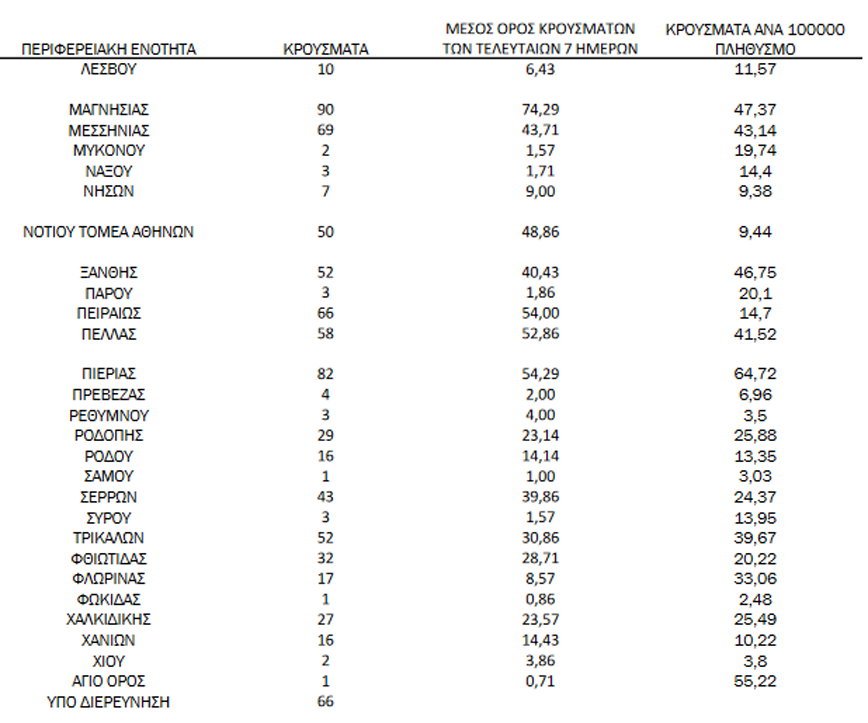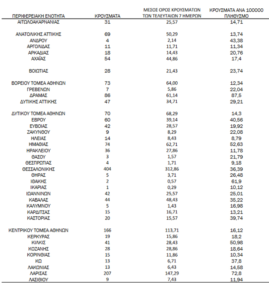 Συγκεκριμένα η Αττική έχει 548 νέα κρούσματα, η Θεσσαλονίκη 404 και η Λάρισα 207.