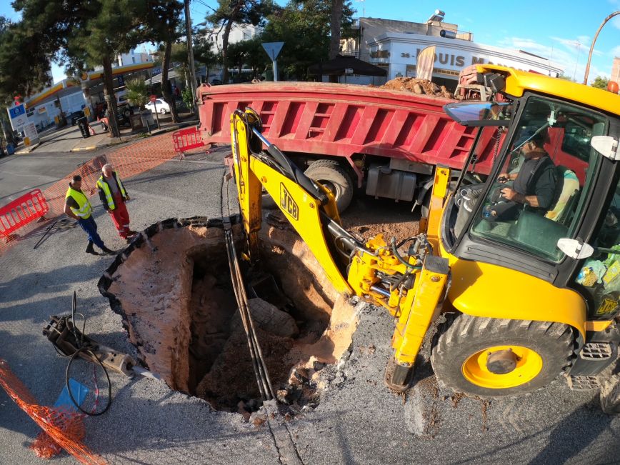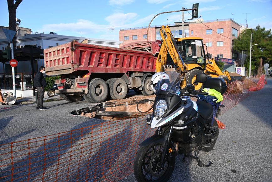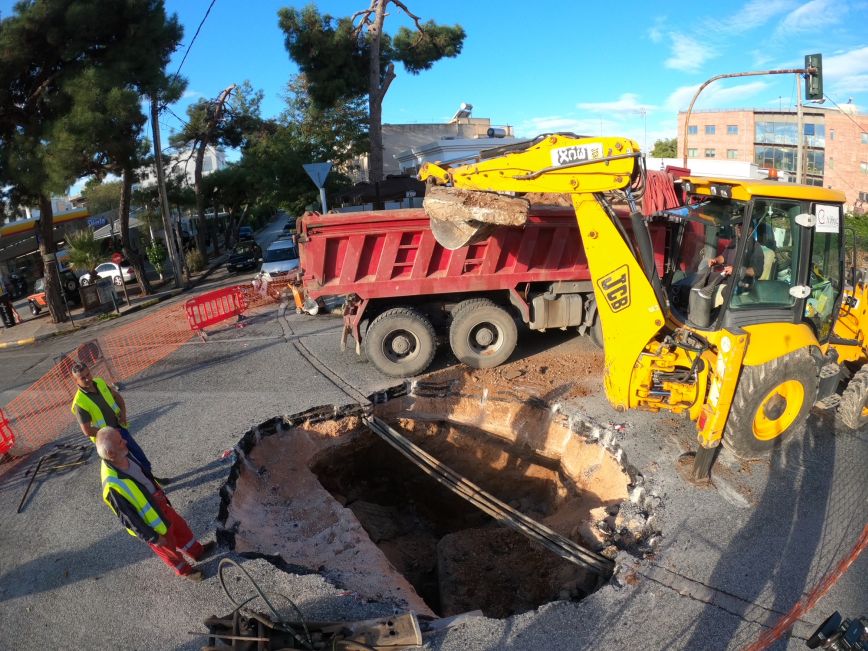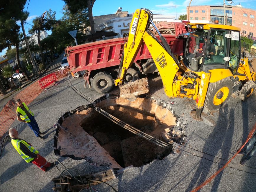 Στο σημείο βρίσκεται ήδη συνεργείο για την αποκατάσταση της ζημιάς, με την τρύπα να είναι αρκετά μεγάλη.