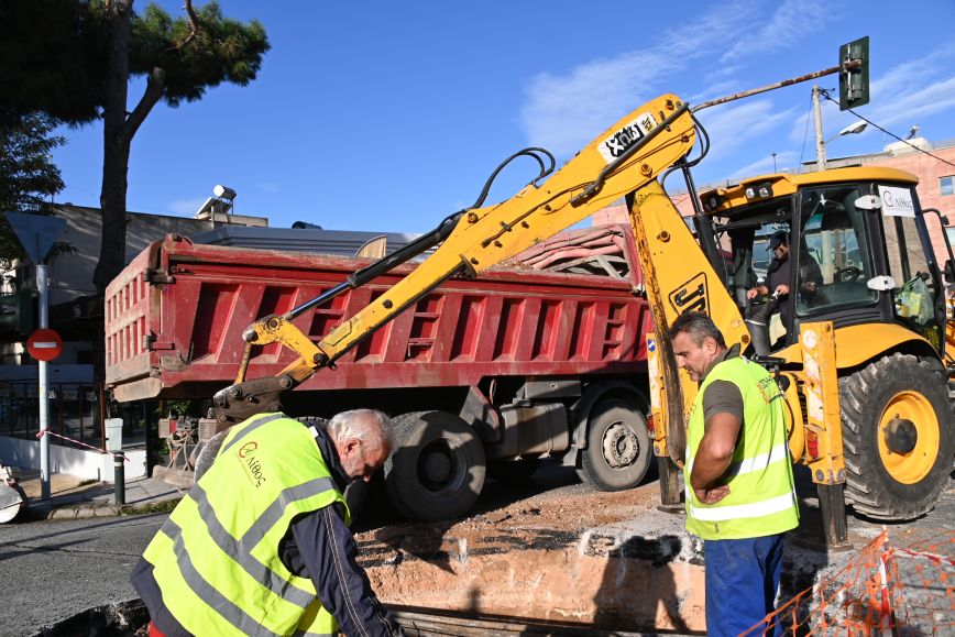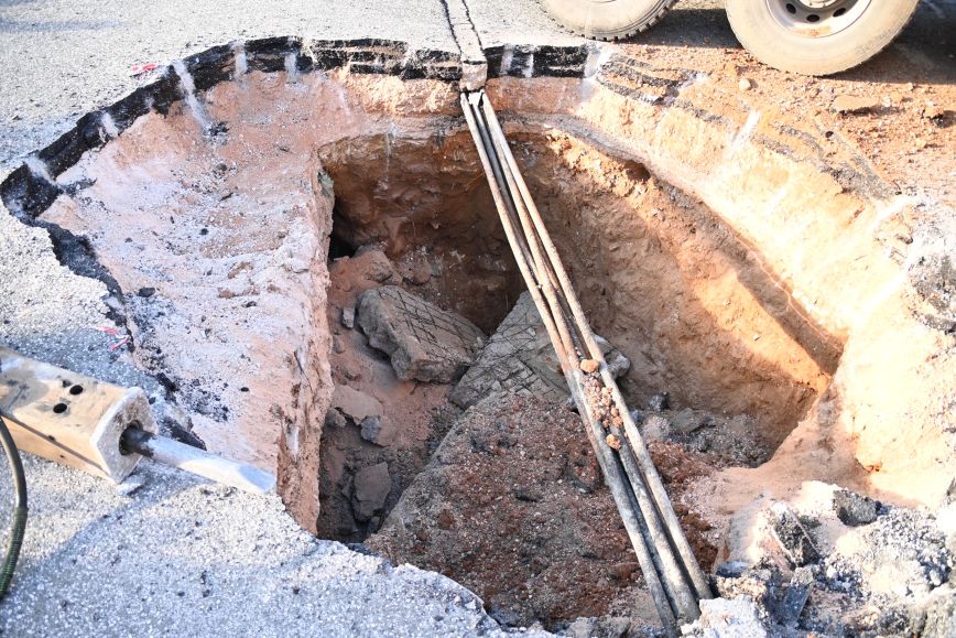 Οι εργασίες γίνονται με μεγάλη προσοχή, καθώς από το σημείο περνάνε οπτικές ίνες και σε περίπτωση λάθους μπορεί να μείνουν χωρίς Internet χιλιάδες σπίτια.