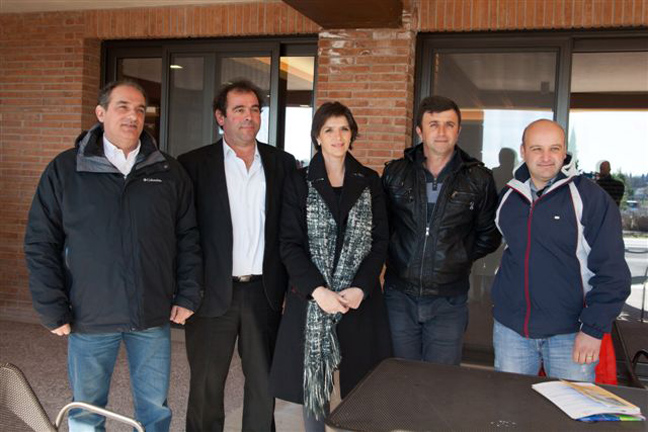 Οι συμμετέχοντες στο πρόγραμμα της εκπαίδευσης των καπνοκαλλιεργητών από αριστερά: E. Bέργος υπεύθυνος προγράμματος της Αμερικανικής Γεωργικής Σχολής, Β. Μελενεκλής, απόφοιτος προγράμματος – Πρόεδρος ομάδας καπνοπαραγωγών Δράμας – Καβάλας, Χριστίνα Ακουρή Διευθύντρια Επικοινωνίας της Παπαστράτος ΑΒΕΣ, Ε. Γιαννώτας απόφοιτος προγράμματος – Πρόεδρος Συνεταιρισμού Λόφου Μηλιάς, και Ν. Τάκος απόφοιτος προγράμματος- παραγωγός.