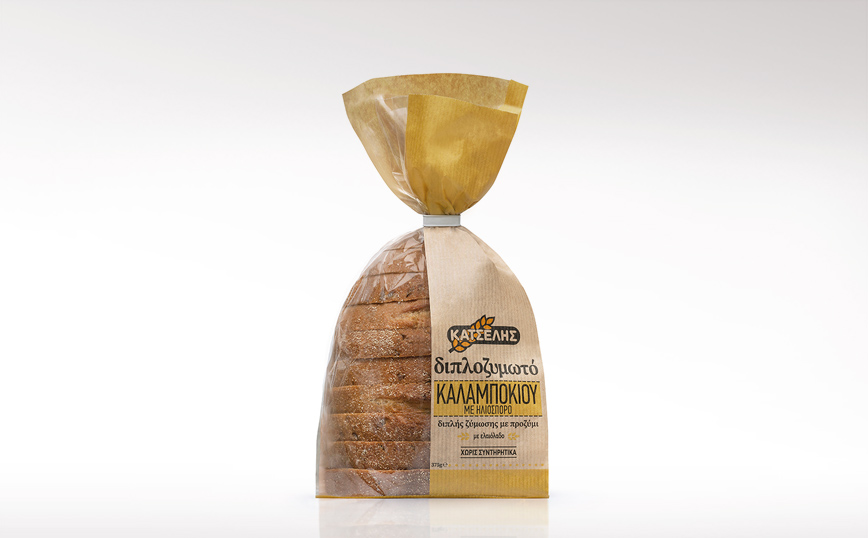 Το νέο ψωμί Κατσέλης Διπλοζυμωτό, παρασκευάζεται από επιλεγμένα άλευρα, αλεσμένα σε πετρόμυλο, με ελαιόλαδο και με διαδικασία διπλής ζύμωσης που αφήνει το χρόνο στο προζύμι να ξεκουραστεί και να ωριμάσει πριν ξαναζυμωθεί με το ζυμάρι. Έτσι, το ψωμί αποκτά μια αφράτη, χαρακτηριστική υφή, πλούσια γεύση και άρωμα και, το κυριότερο, διατηρείται αναλλοίωτο για όλη την εβδομάδα χωρίς συντηρητικά!