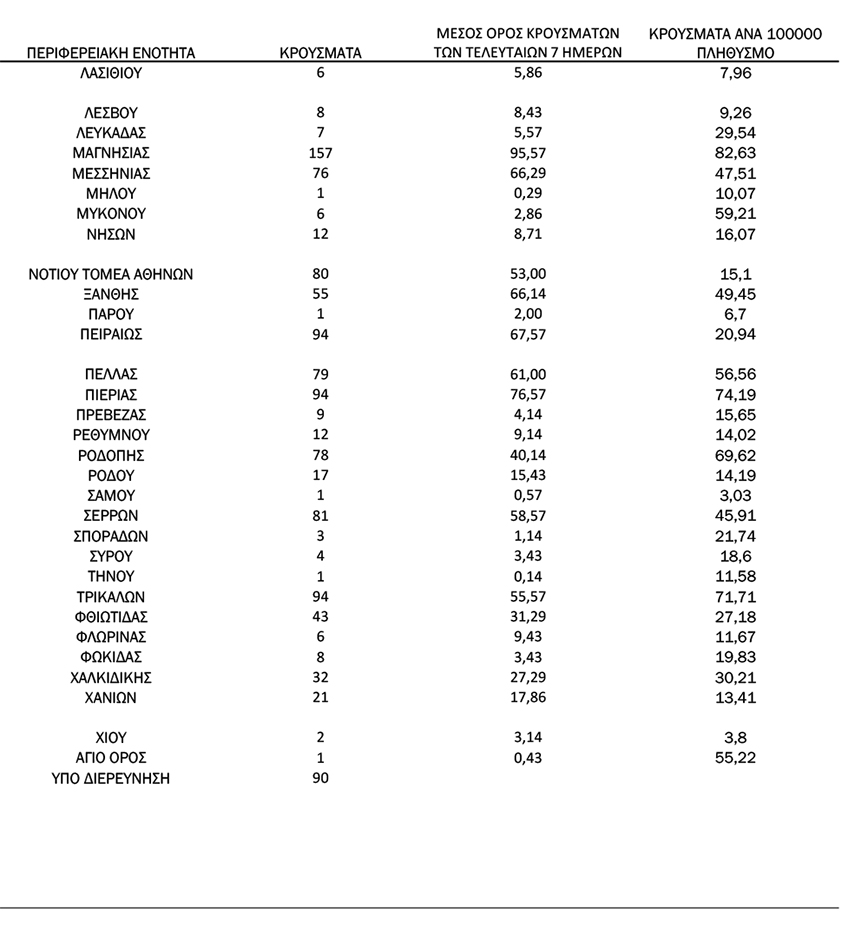Συγκεκριμένα η Αττική έχει 659 νέα περιστατικά κορονοϊού, η Θεσσαλονίκη 523, η Λάρισα 194, η Μαγνησία 157 και η Ημαθία 133.