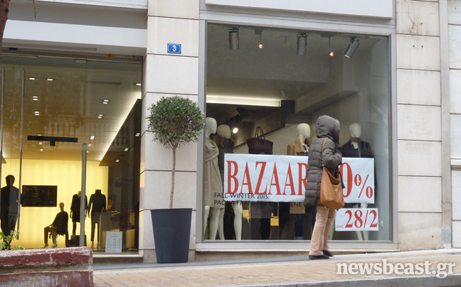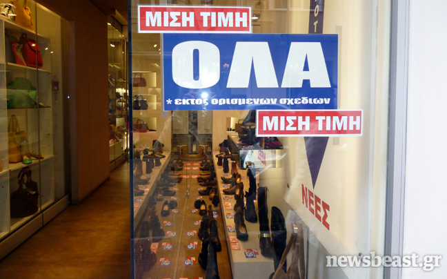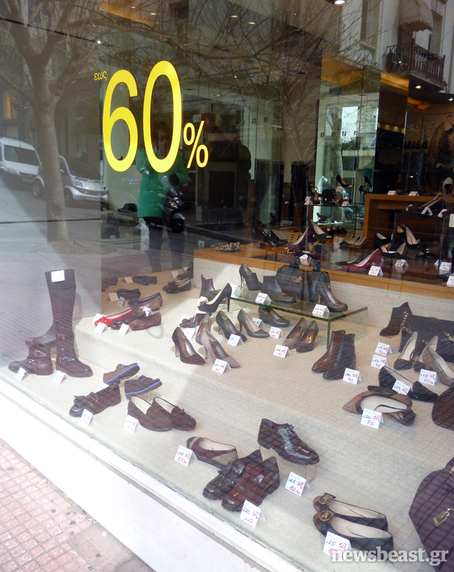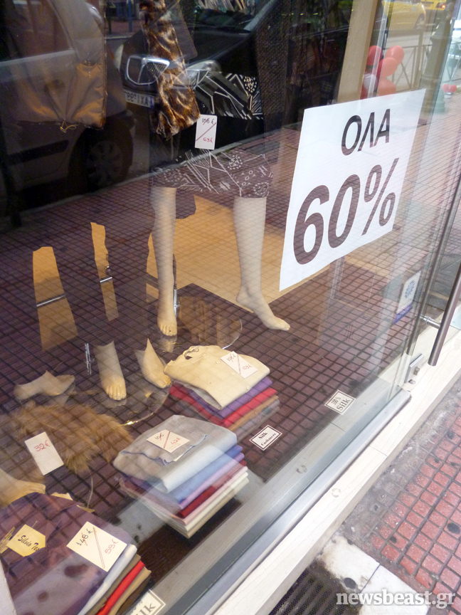 Η Ελλάδα ξαφνικά φτώχυνε. Η ανεργία αυξήθηκε κατά 190% σε πέντε χρόνια ενώ η αγοραστική δύναμη έπεσε κατά 25%. Αυτό είχε ως αποτέλεσμα ακόμα και στο Κολωνάκι τα «πωλείται» και τα «ενοικιάζεται» σε μπουτίκ που μέχρι πρότινος κρατούσαν τα ηνία της αγοράς, να πολλαπλασιάζονται σταθερά ενώ ακόμα και οι τιμές των ρούχων παρουσιάζονται πεσμένες.