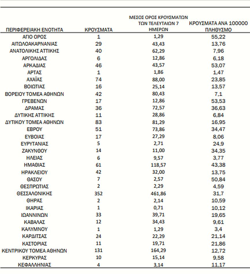Στο «κόκκινο» παραμένει η Αττική, καθώς από τα 2098 νέα κρούσματα που ανακοίνωσε σήμερα ο ΕΟΔΥ οι 413 μολύνσεις εντοπίζονται στο Λεκανοπέδιο. 352 είναι τα κρούσματα στη Θεσσαλονίκη, 151 στη Λάρισα.